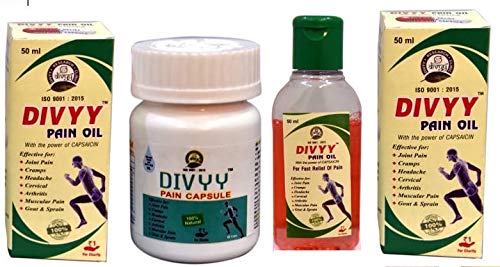 A Pack of 1 UNIT OF Divyy Capsules + DIVYY PAIN OIL is a proprietary product of Divyy Research, with unique combination of various herbs to sooth and cure neuro-musculo skeletal disorders or pains. Divyy Pain Capsules work best with Divyy Herbal Pain Oil. Highly Effective for Arthritis, Back Pain, Body Massage, Body Stiffness, Joint.